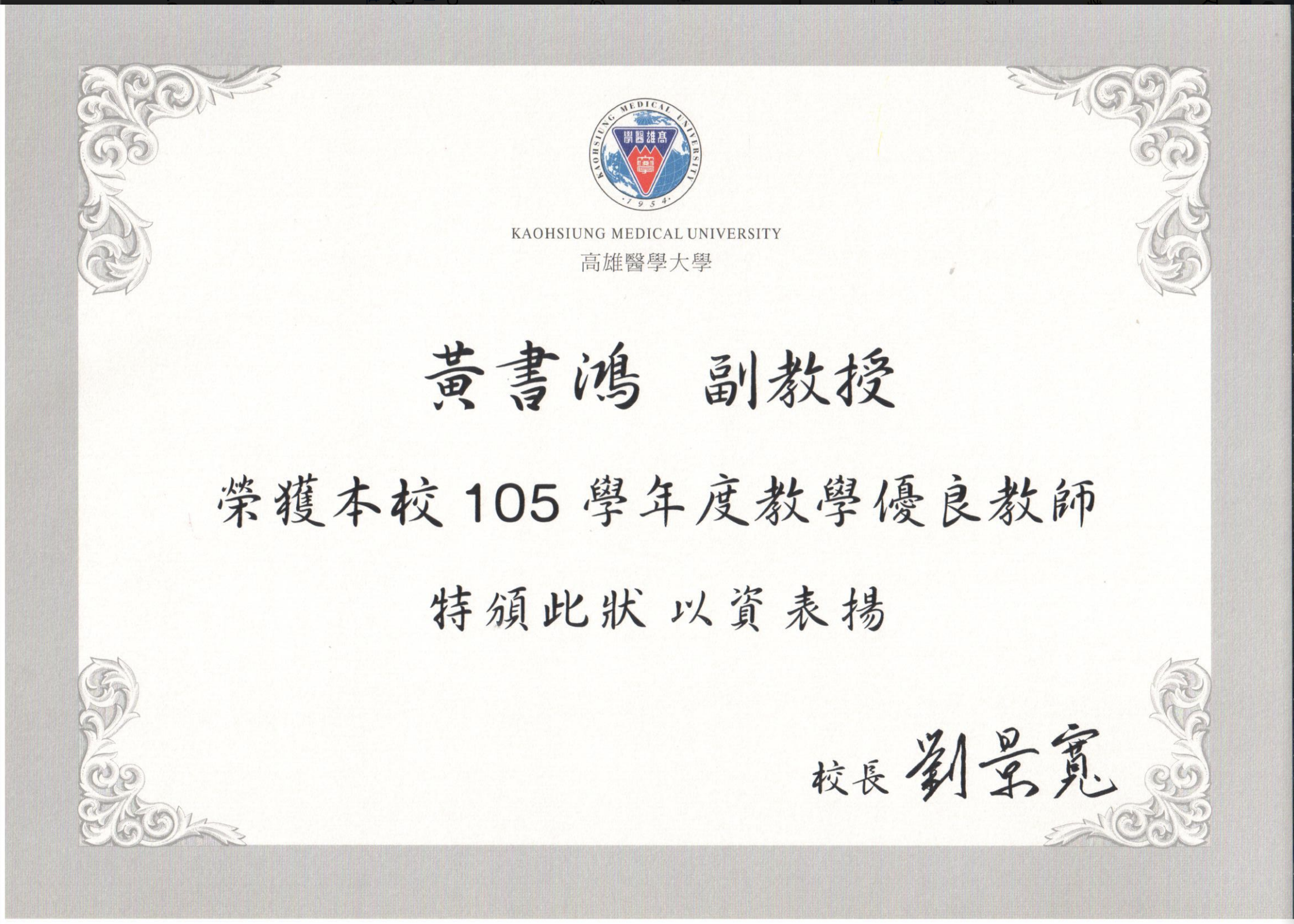 - 2016年(105學年度) 高雄醫學大學 教學優良教師