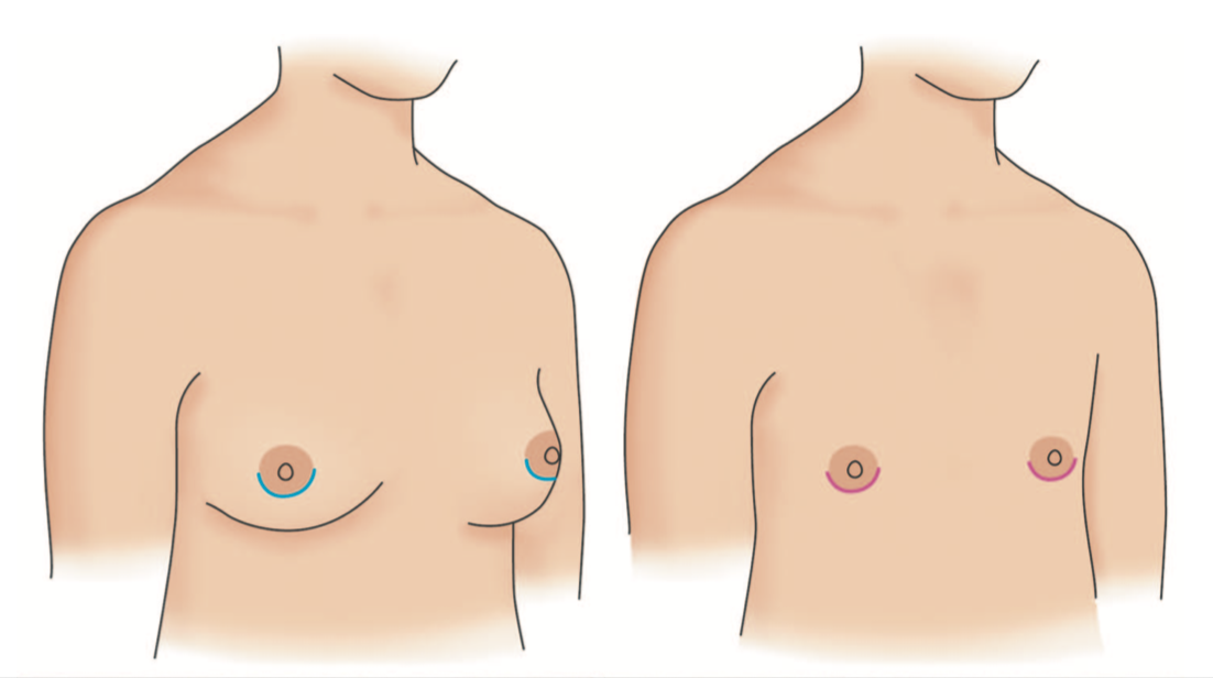 1.A罩杯的情況適合從乳暈外緣下刀進行手術,若需要修乳頭,可以從乳暈附近下刀,順便縮乳頭與切乳房。