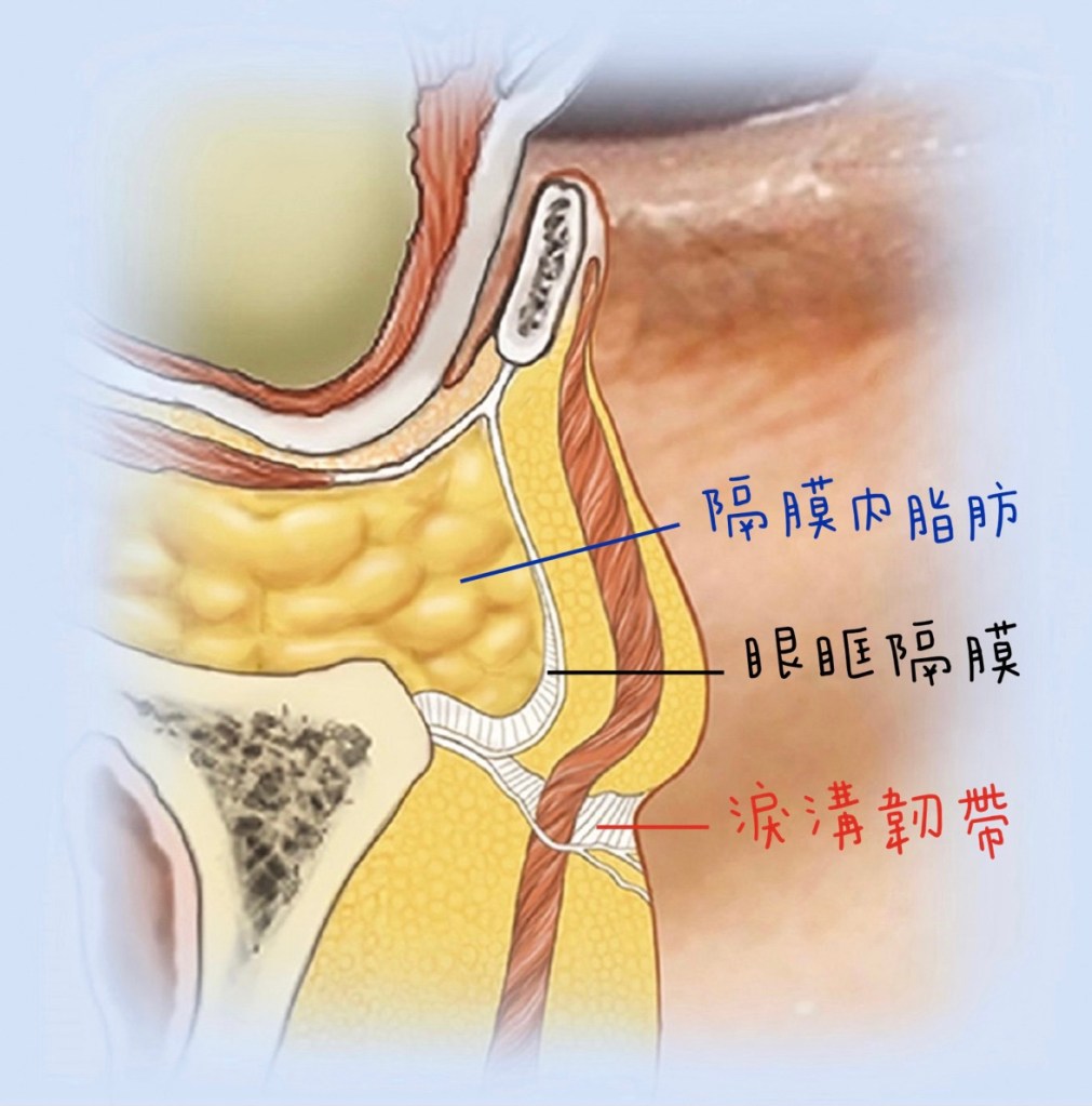 隨著年齡增長、生活作息、過度使用3C產品…,在膠原蛋白及彈力纖維慢慢流失的情況下,導致眼周肌膚和眼眶隔膜的老化及鬆弛,下眼眶脂肪膨出。