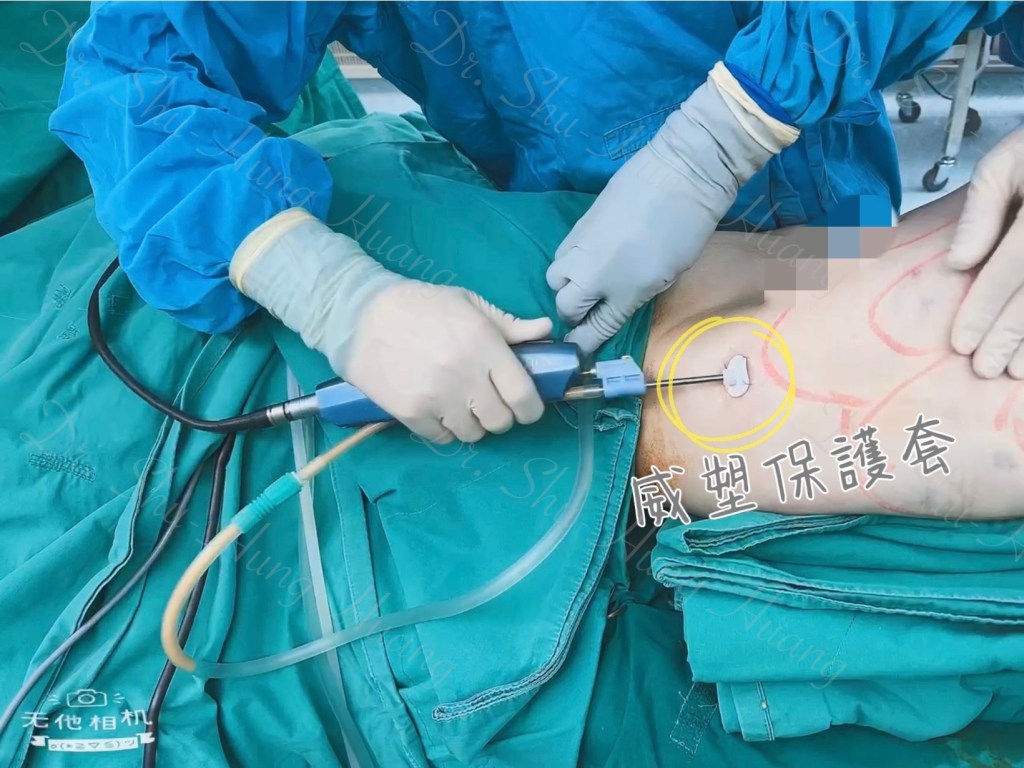 • 插入抽脂管,吸除乳化的脂肪細胞。