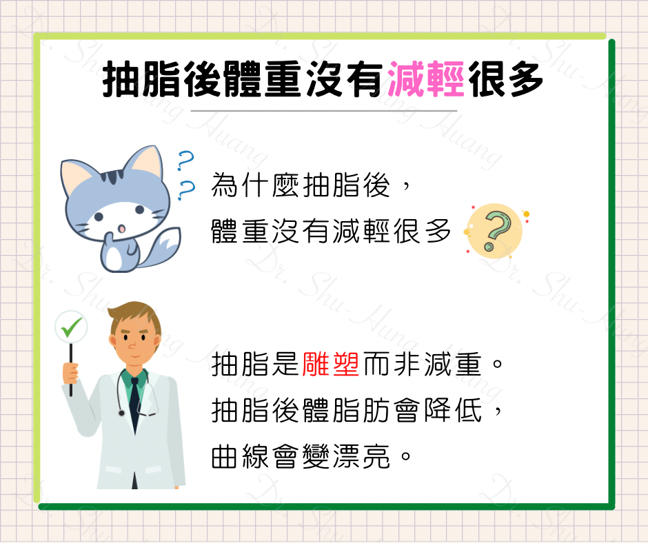同重量的脂肪是肌肉的3倍大,抽脂手術並不會對體重有很大的影響