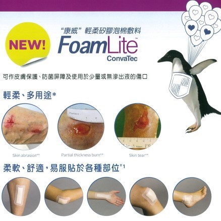 - 洗澡後檢查FoamLite是否滲濕,如有滲濕,清潔傷口塗抹藥膏後,更換新的FoamLite。
