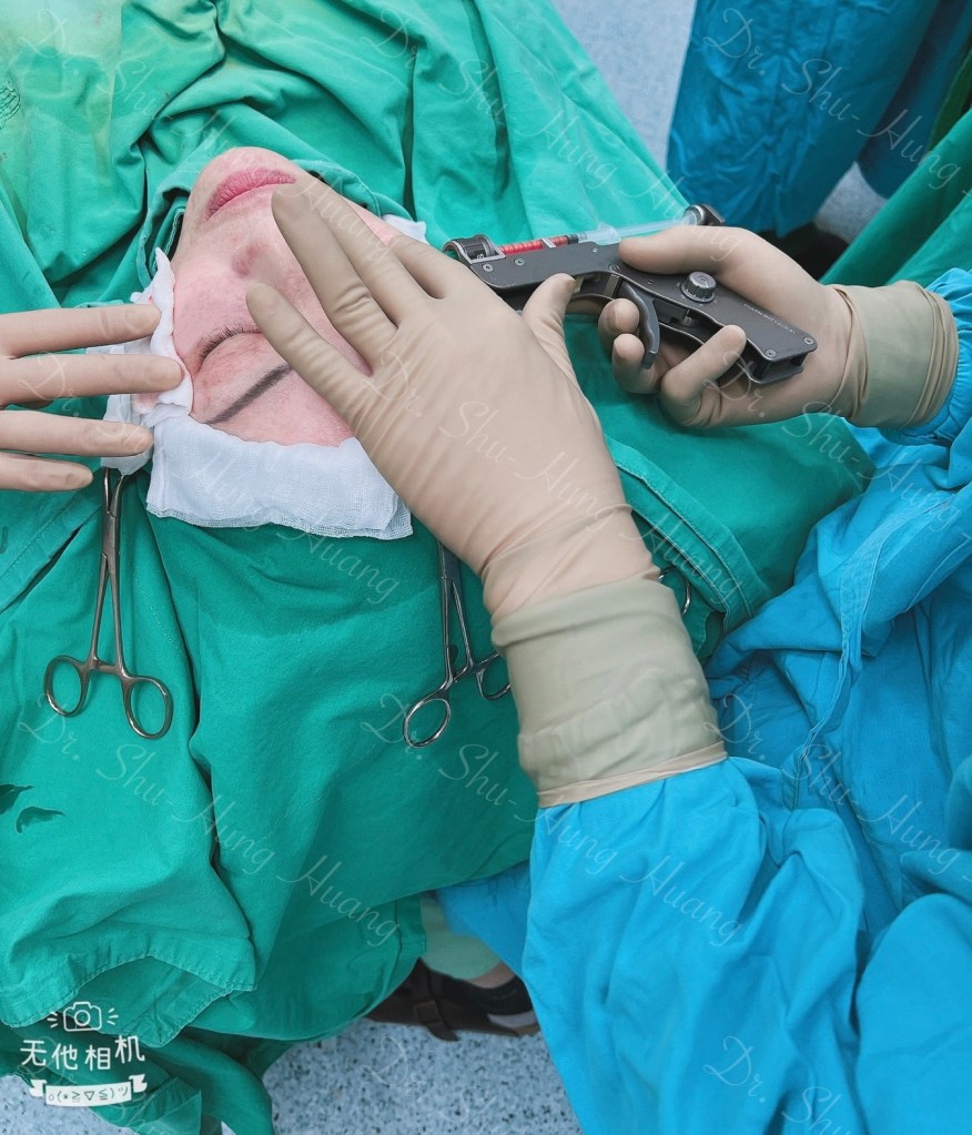淺層部位,利用專業脂肪槍(MAFT Gun),可以精準控制每次脂肪施打的劑量。