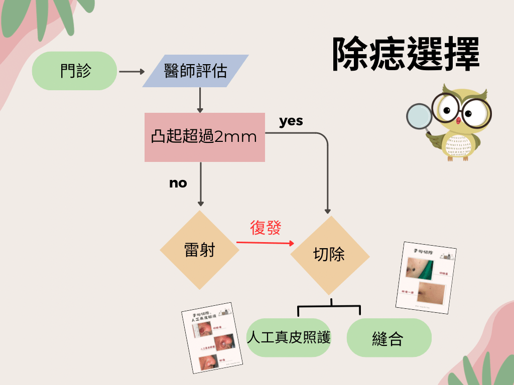 依照痣的種類、大小、部位有不同的處理方法,