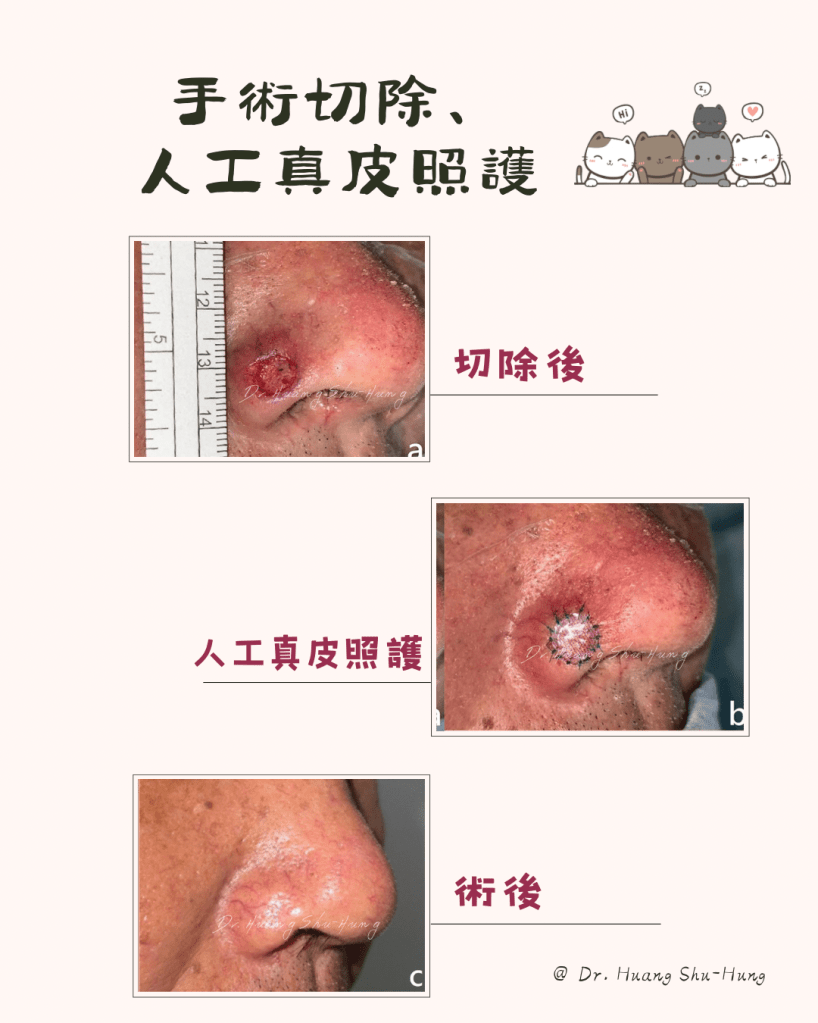 採用手術切除方式,可搭配人工真皮,減少凹陷的發生。
