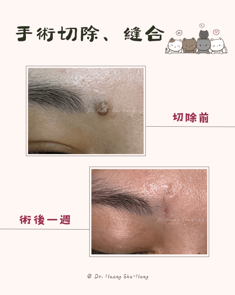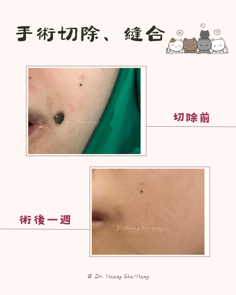 所以採用手術切除,局部麻醉後,以外科手術切除的方式,將痣細胞完全切除。